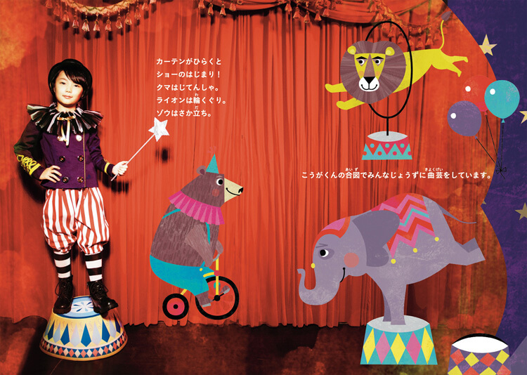 私も子供の頃サーカスが大好きで、アクロバットなパフォーマーや動物達にとても感動しました。 そんな夢のある絵本フォトの企画に参加でき、とても光栄に思います。子供達が笑顔でこの世界を体感できれば嬉しいです。
